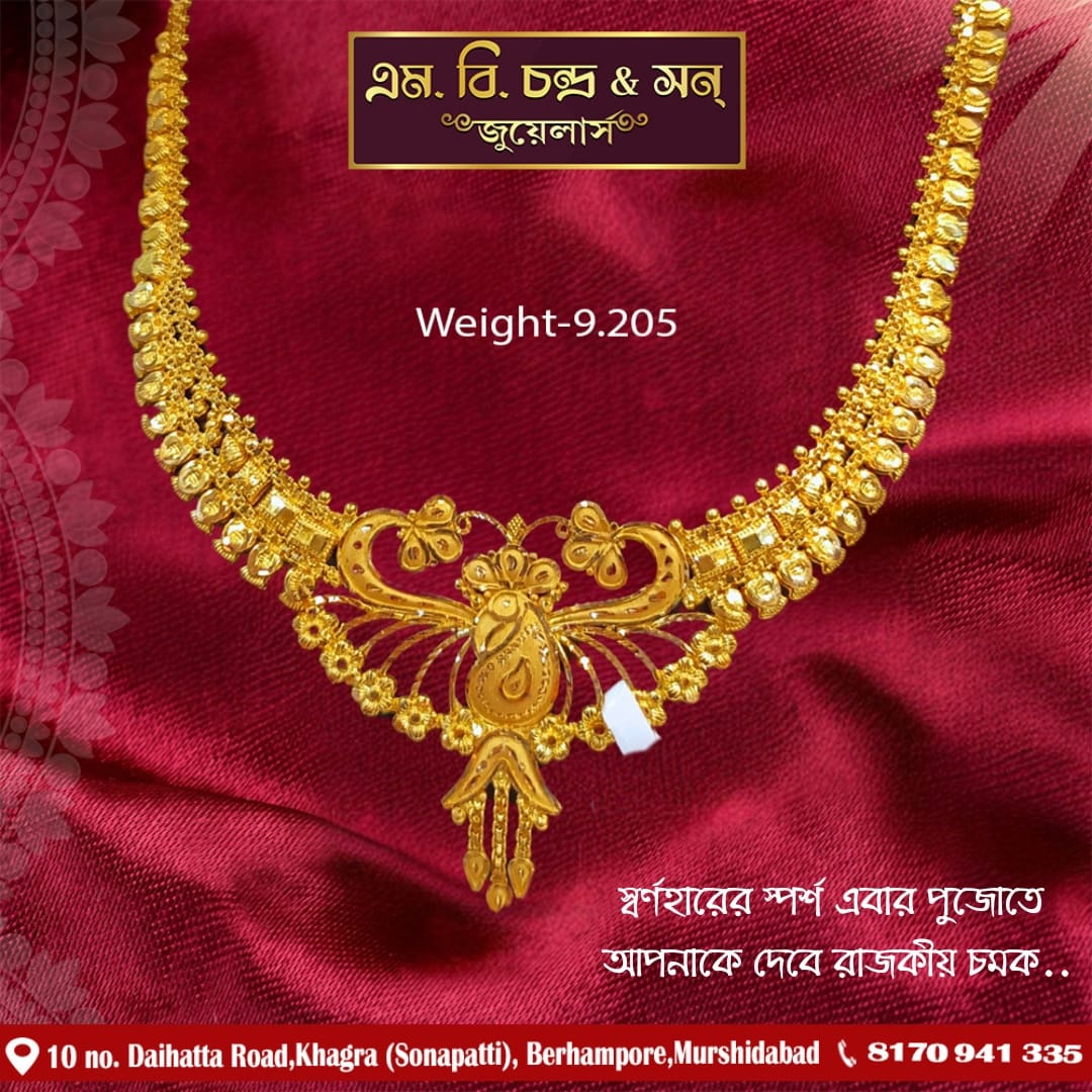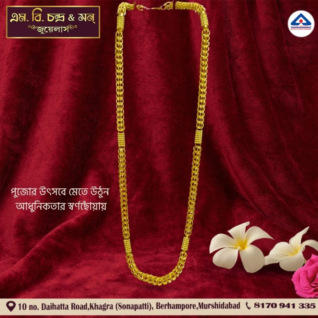 Discover the timeless elegance of gold at M.B.Chandra & Son. Our collection features exquisite handcrafted jewelry, from stunning necklaces and bracelets to intricate earrings and rings. Each piece is crafted with the finest materials and attention to detail, ensuring that you find something truly special for any occasion.